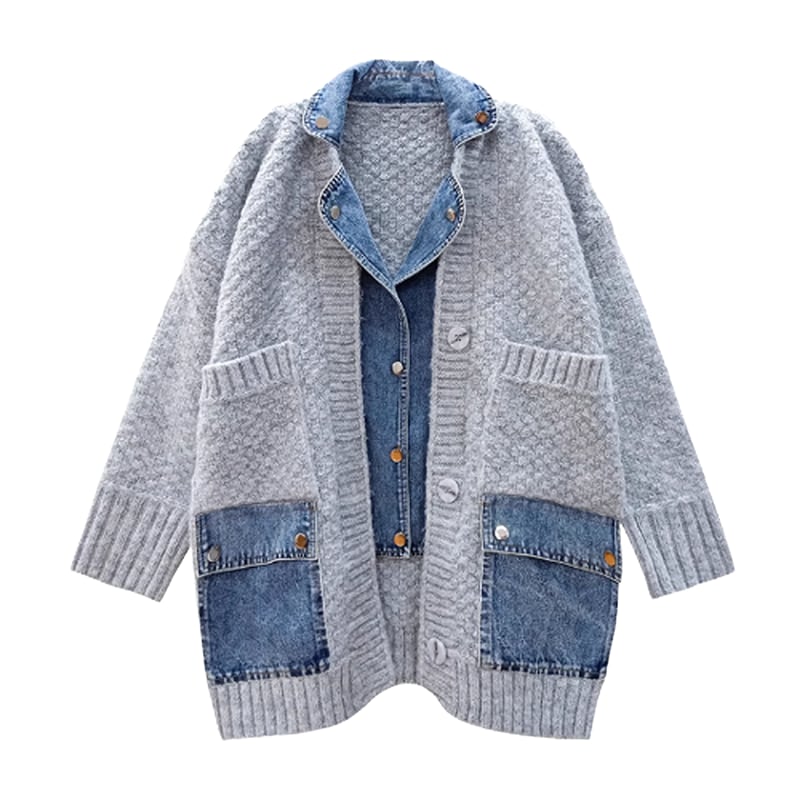 Denim combination cardigan 1240