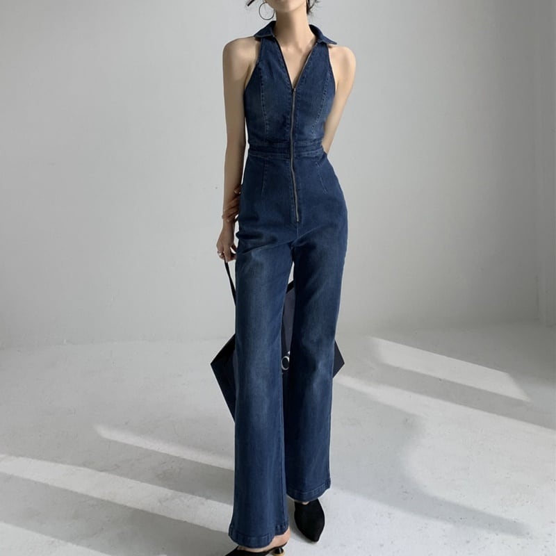 No sleeve denim all in one :1204