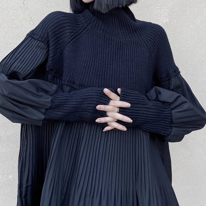 Pleats switching knit 1499