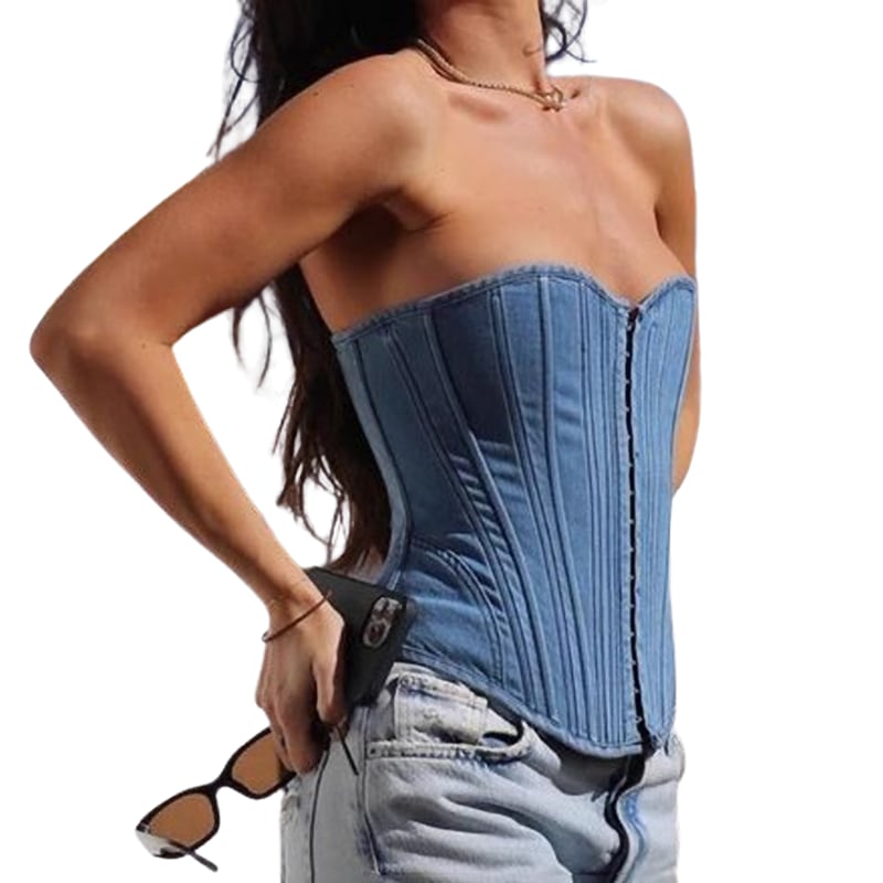 Lace up denim tops 1614
